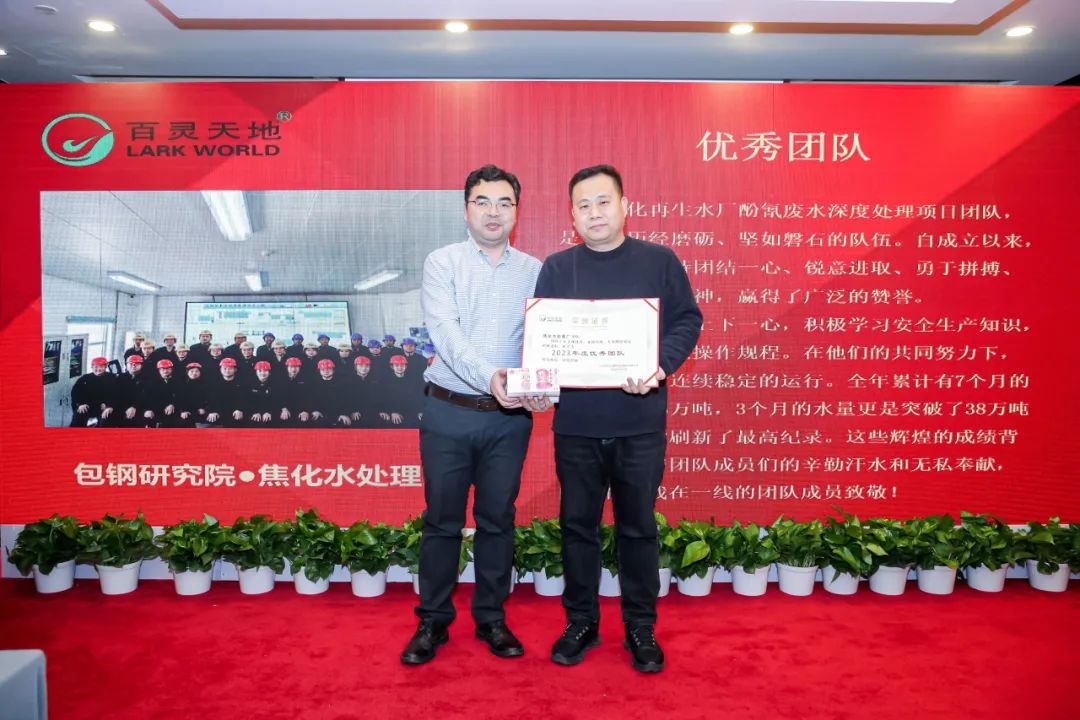 會(huì)上,公司對(duì)2023年在經(jīng)營(yíng)攻堅(jiān)、提質(zhì)增效、創(chuàng)新發(fā)展表現(xiàn)突出的集體和個(gè)人進(jìn)行了表彰,并向包鋼研究院焦化再生水廠優(yōu)秀團(tuán)隊(duì)、啜向成等先進(jìn)個(gè)人、楊慶豐等優(yōu)秀領(lǐng)導(dǎo)者頒發(fā)了榮譽(yù)證書(shū),以此激勵(lì)全體員工繼續(xù)發(fā)揚(yáng)卓越的工作精神。王文勝董事長(zhǎng)還與各項(xiàng)目公司、各中心、各部門簽訂了2024年經(jīng)營(yíng)目標(biāo)責(zé)任書(shū)。